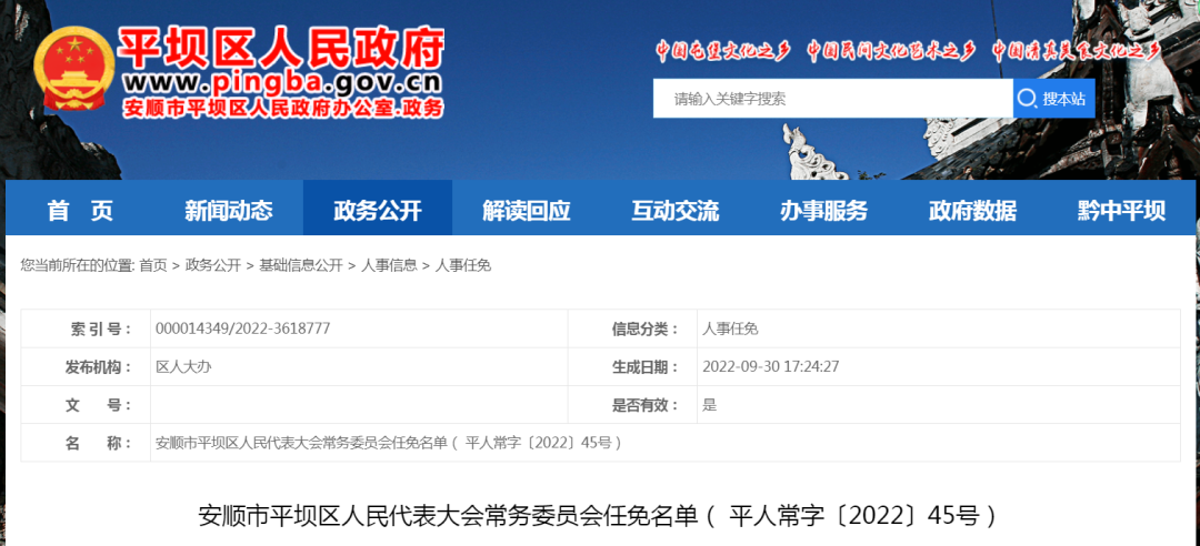 (2022年9月28日安顺市平坝区第三届人大常委会第七次会议通过)