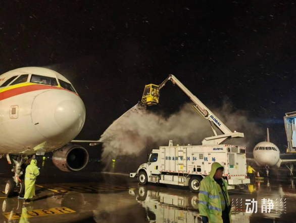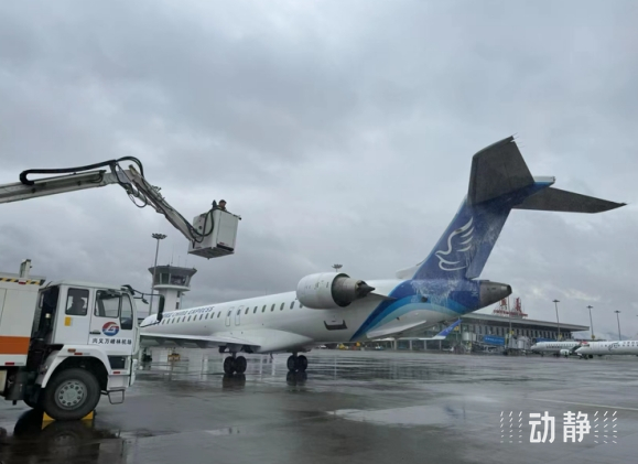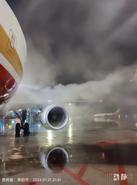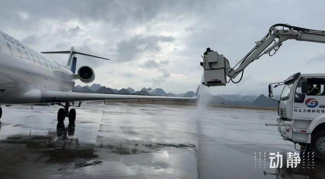 记者从贵阳机场获悉,虽受到降雪影响,但目前贵阳龙洞堡国际机场航班运行安全有序,部分航班起飞前需要除冰作业,今日首班除冰的是成都航空EU1823/B1071/A320,于06:20开始除冰。