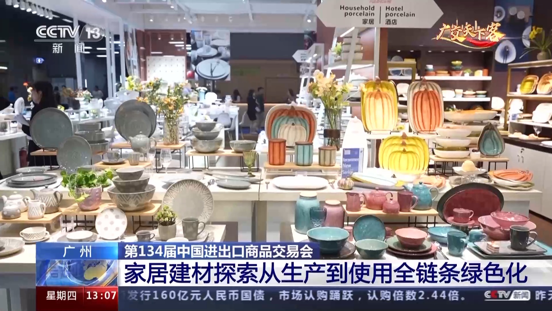 总台记者 赵菁:除了产品使用可回收材质之外,生产上的绿色也是重要的一项,比如拿高耗能的陶瓷产品来说,通常在烧制时,坯料瓷化需要升温到1350℃左右,但从1250℃升温到1350℃的区间内,会消耗掉30%的燃料。而这里的这些陶瓷制品,通过改变原材料的成分配比,让产品在1250℃时就可以实现瓷化,从而降低了能耗。