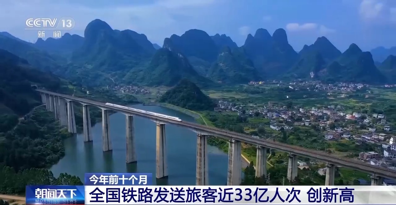 国铁集团最新数据显示,今年前十个月,全国铁路累计发送旅客近33亿人次,创历史新高。