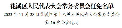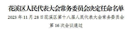 11月28日,花溪区第十八届人民代表大会常务委员会第16次会议决定任命石松为花溪区人民政府副区长,会议还通过了其他人事事项。