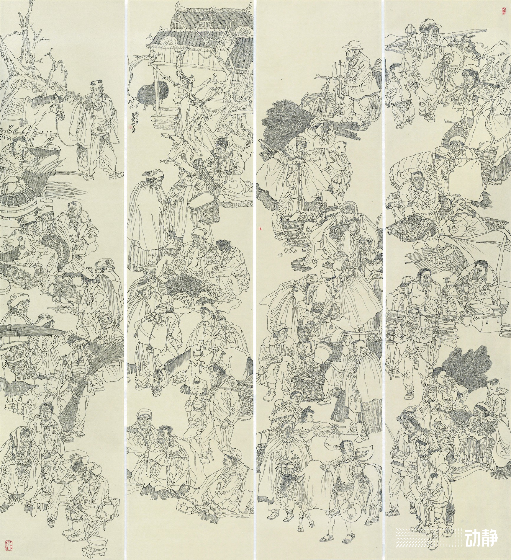展出的作品从题材上看,既有民族文化复兴,也有当代全新创造;既有青山绿水的自然,也有车水马龙的都市;既有热火朝天的建设,也有安居乐业的生活;既有现实人文关怀,也有美好未来憧憬。