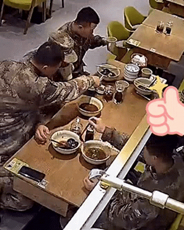 5名官兵在饭店用餐后