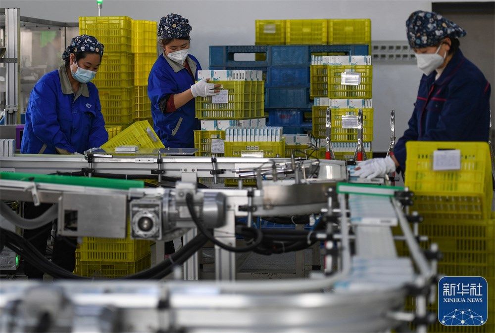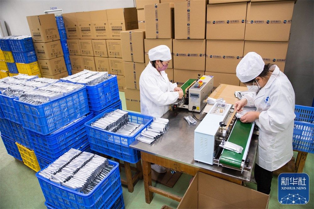 12月19日,西安一家药企的工作人员在外包装车间作业。新华社发(邹竞一 摄)