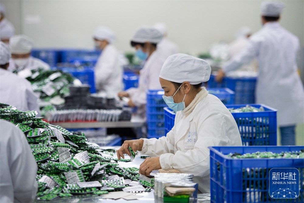 12月19日,在湖南浏阳经开区一制药企业生产车间,工作人员在包装药物。新华社记者 陈思汗 摄