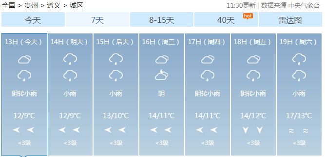 周一,阴天有小雨,局地有雾,主城区气温10~13℃;