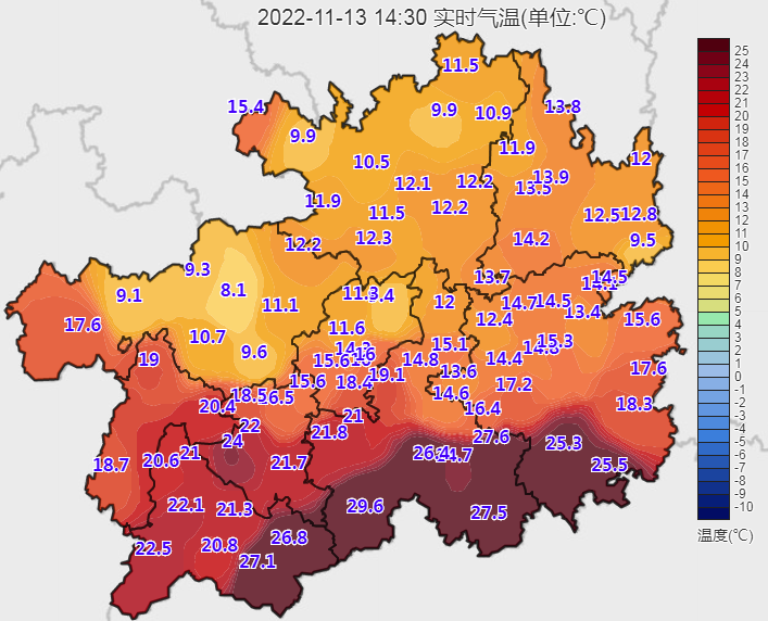 据贵州省气象台消息,受冷空气影响,目前我省中北部地区已经出现6-12℃的降温天气,预计冷空气持续南下影响,今天午后至夜间气温继续先后下降。