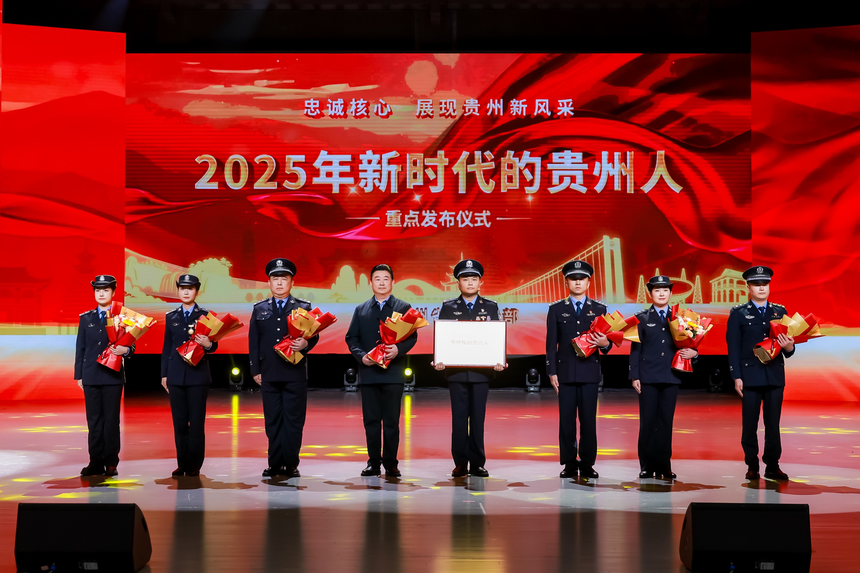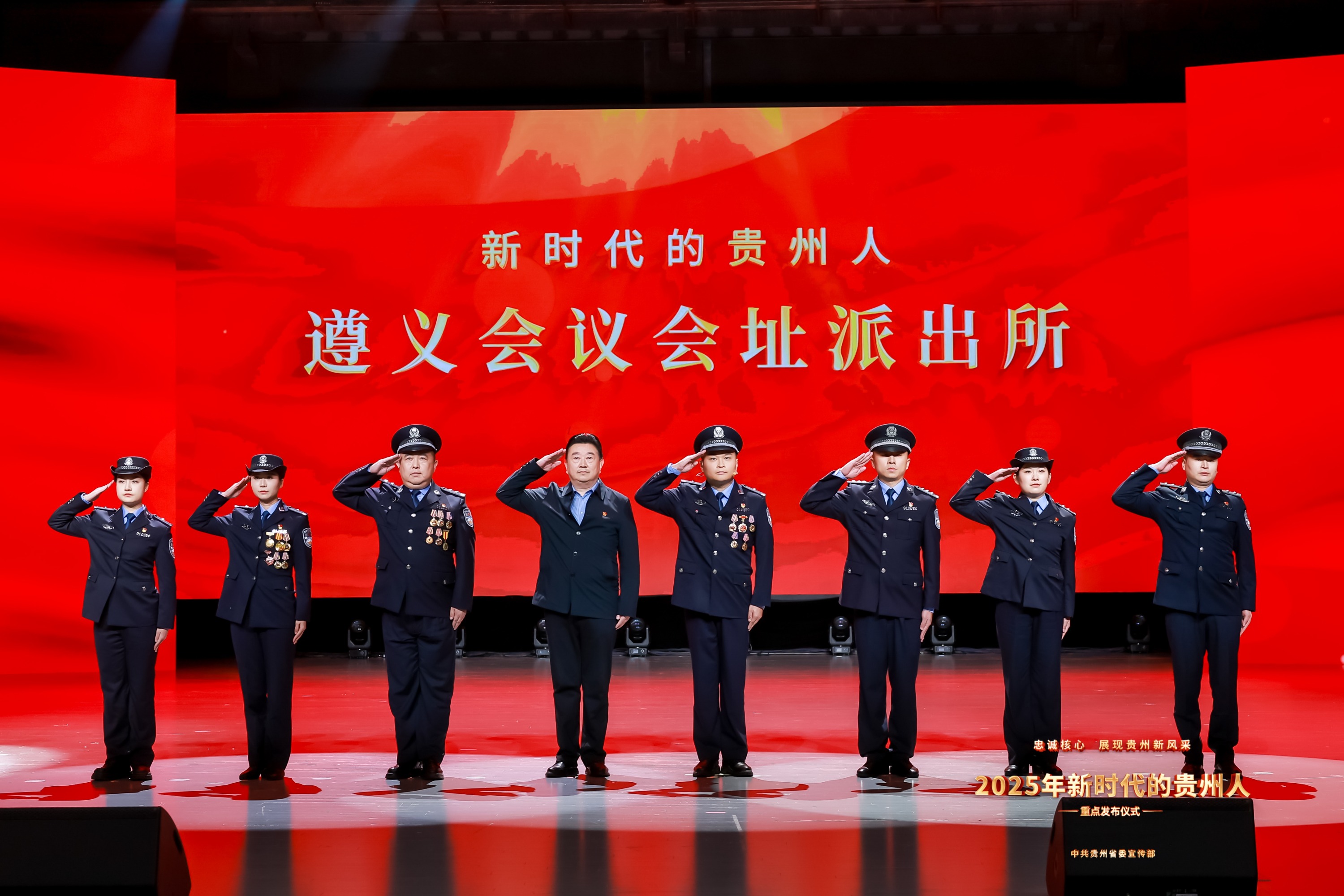 发布仪式现场还举行了庄重的致敬仪式与颁奖献花环节。伴随着“热血铸就忠诚,铁骨挺起脊梁”的致敬词,领导为遵义会议会址派出所颁发“新时代的贵州人”奖牌;贵州大学学生代表手捧鲜花走向民警,将青年一代对红色守护者的敬意与红色基因传承的期盼,融入这一温暖瞬间。