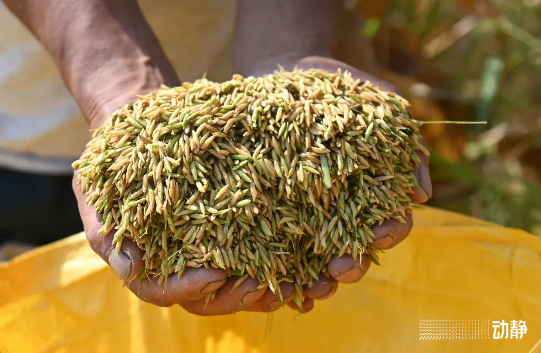 稻田里,稻穗低垂,一片金黄,金灿灿的水稻在阳光下的照耀下显得格外喜人。