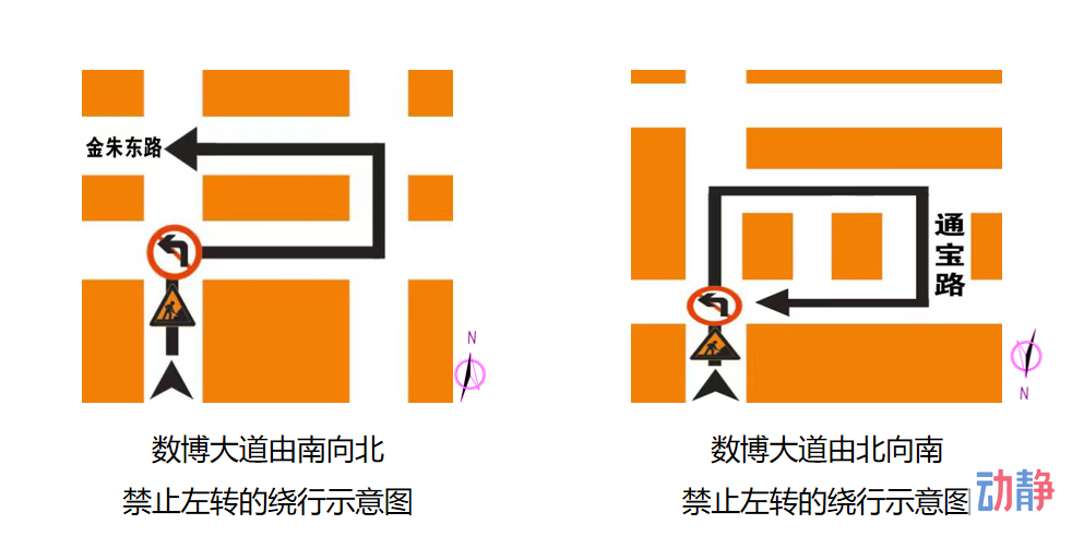 二、从数博大道长岭北路(南北双向)进入金融城路口的车辆禁止左转和掉头。