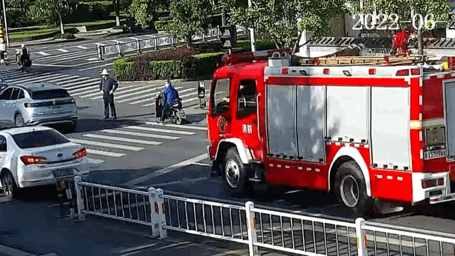 直至两辆消防车迅速通过