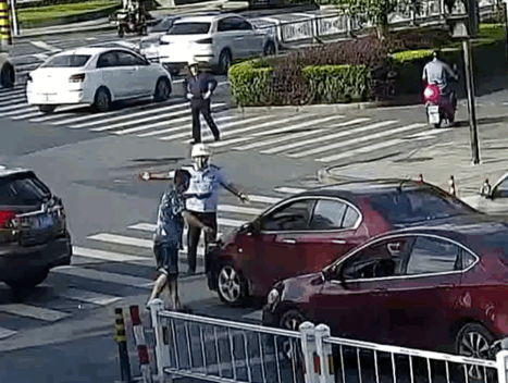 突然上前协助交警疏导车辆