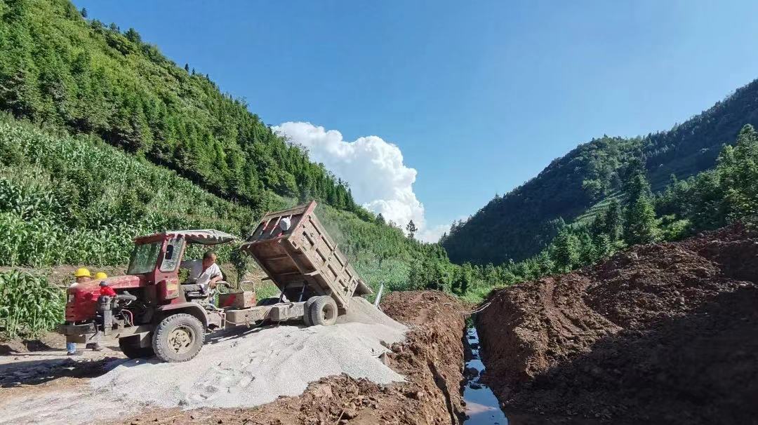 除了道路工程,灌溉工程也在同步推进。在箐口村,一座新建水池已完成池体开挖。这几天,工人们正忙着拉运材料,准备进行下步的垫层施工。