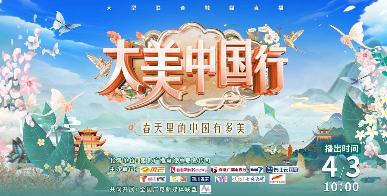 由国家广播电视总局宣传司、网络视听司指导,湖南广播影视集团(台)、上海广播电视台、安徽广播电视台、江西广播电视台、湖北广播电视台、广东广播电视台、广西广播电视台、四川广播电视台、贵州广播电视台、云南广播电视台、新疆广播电视台、山东广播电视台共同主办,全国广电新媒体联盟共同开展的大美中国行·春天里的中国有多美——大型融媒体联动直播活动目前正在播出中。