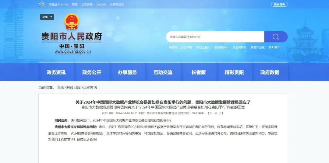 网民咨询:请问相关部门,2024年中国国际大数据产业博览会是否如期在贵阳举行?