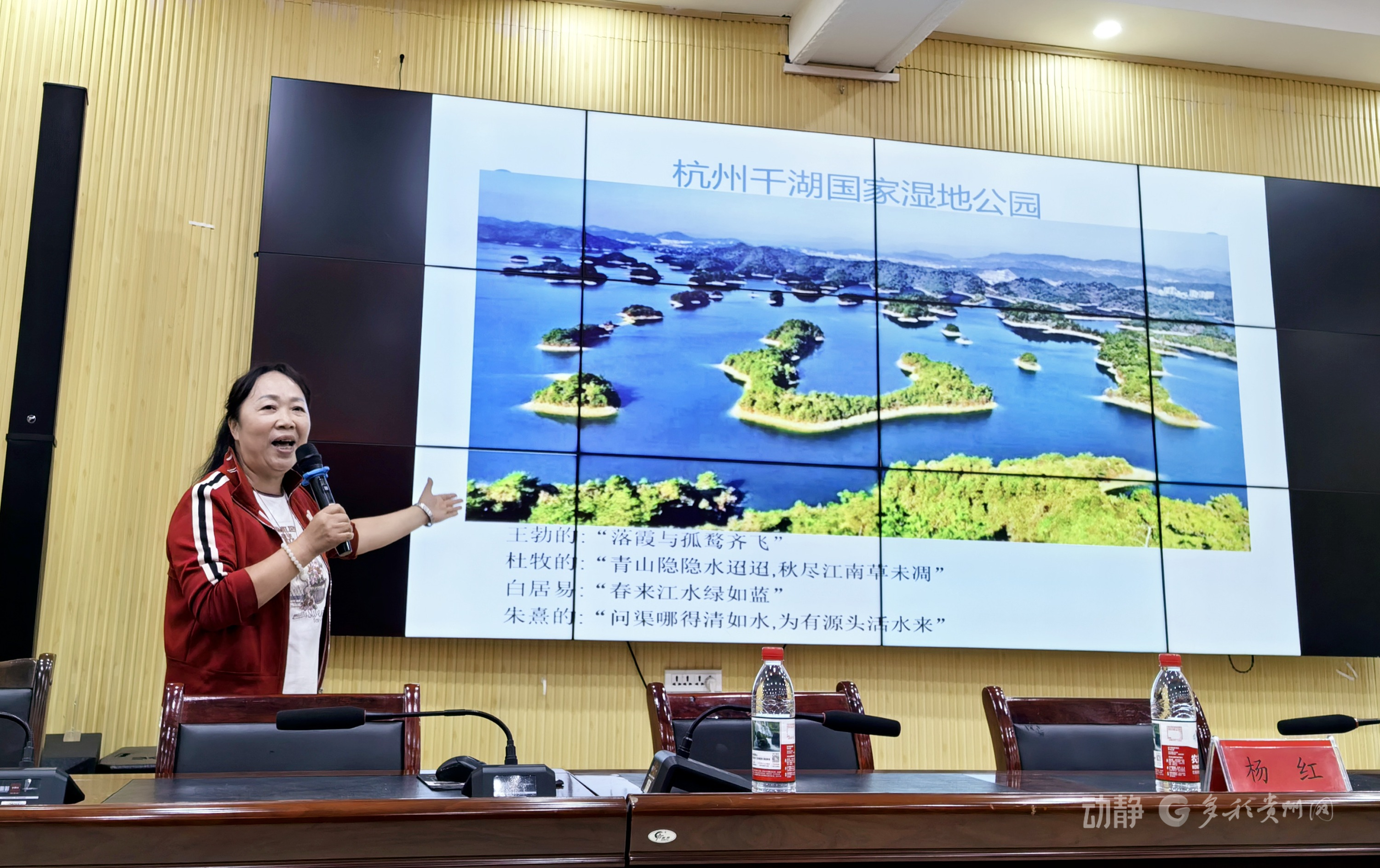 湿地被誉为“地球之肾”,在涵养水源、调节气候、维护生物多样性等方面发挥着不可替代的作用。本次活动特邀铜仁学院林业研究专家教授杨红进行主题宣讲,借助PPT和短视频,从“什么是湿地”这一基础问题入手,深入浅出地讲解湿地的类型、功能以及贵州省内特别是铜仁市周边湿地的独特价值与现状。结合梵净山脚下、锦江河畔的本土案例,让学生们深刻感受到湿地保护并非遥不可及,而是与自己的生活息息相关。
