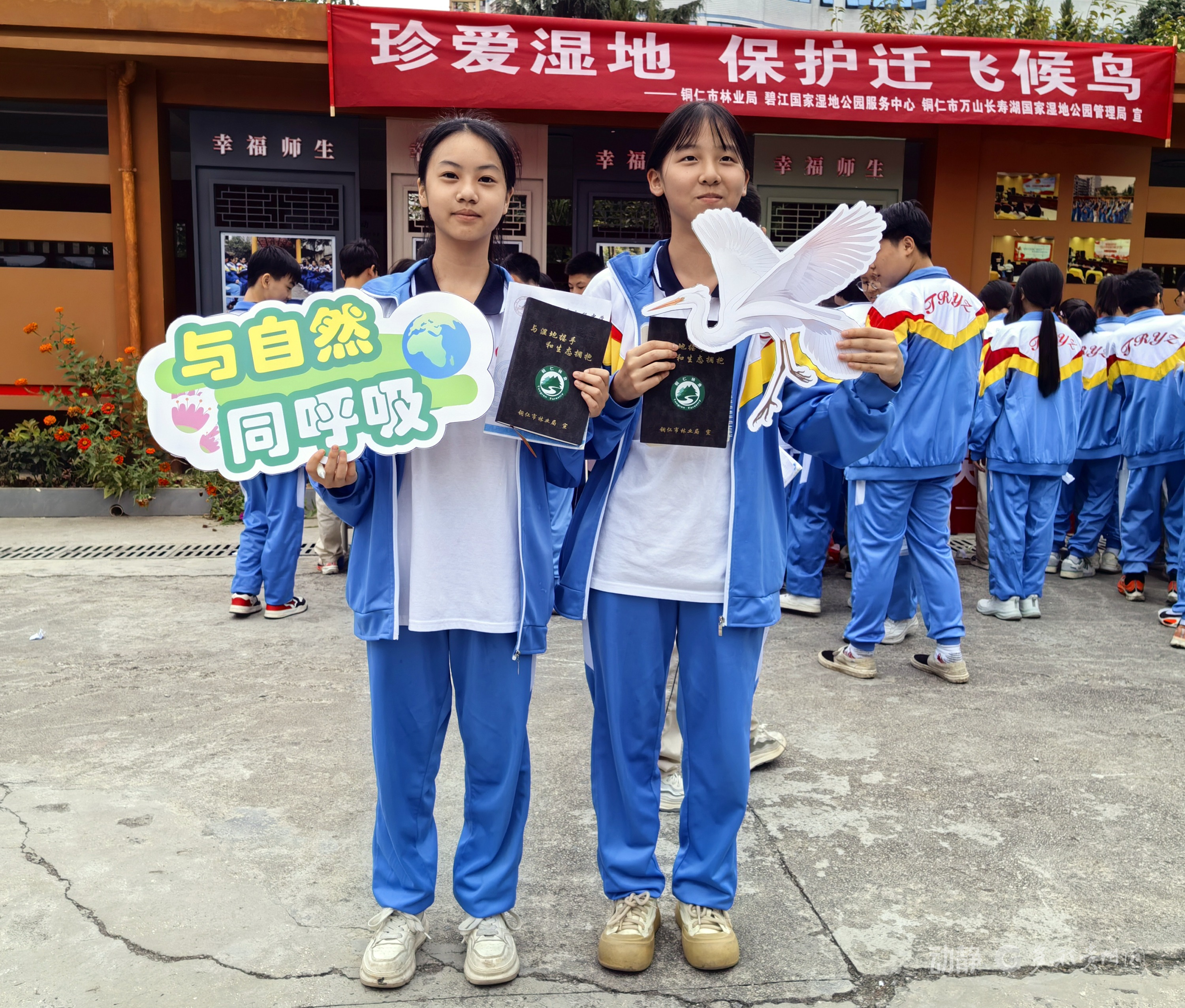 “湿地指的是什么?”“请说出一种铜仁常见的湿地鸟类!”……有奖问答环节将现场气氛推向高潮,展台被围得水泄不通,同学们争先恐后参与答题,正确的回答声此起彼伏。