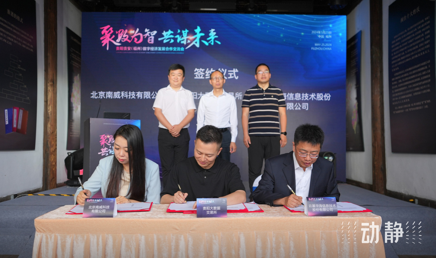 现场,贵阳市大数据交易所还与福建、北京等4家签署数商协议。据介绍,此次交流会在第七届数字中国建设峰会期间举行,旨在搭建起贵州和福建两地在数字经济发展的沟通桥梁,促进产业合作。