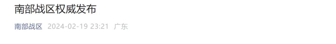 2月19日,菲方拉拢域外国家搅局南海,组织所谓“联合空中巡逻”并公开炒作,中国人民解放军南部战区组织一线海空兵力严密监控,情况尽在掌握。战区部队保持高度警惕,坚决捍卫国家主权安全和海洋权益,坚决维护南海地区和平稳定。
