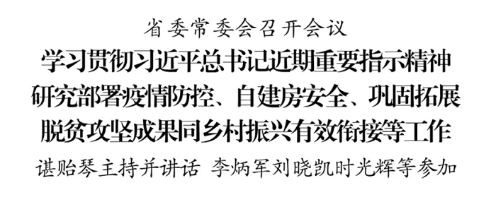 5月13日,省委常委会召开会议,学习贯彻习近平总书记在庆祝中国共产主义青年团成立100周年大会上的重要讲话精神,5月5日中央政治局常委会会议精神和全国疫情防控工作电视电话会议精神,习近平总书记对湖南长沙居民自建房倒塌事故的重要指示精神和全国电视电话会议精神,学习贯彻全国2021年度巩固拓展脱贫攻坚成果同乡村振兴有效衔接考核评估发现问题整改工作电视电话会议精神,学习贯彻《信访工作条例》,部署中央生态环境保护督察反馈问题整改、全省科技创新等工作。