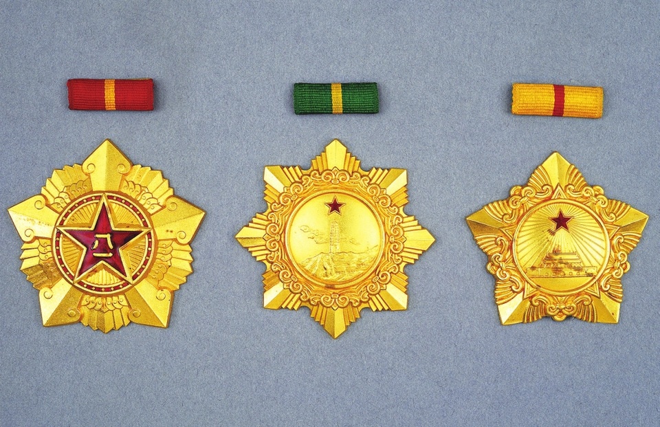 新中国成立后,为表彰人民军队所建立的伟大功勋,1955年2月,第一届全国人大常委会第七次会议通过《关于规定勋章奖章授予中国人民解放军在中国人民革命战争时期有功人员的决议》和《中华人民共和国授予中国人民解放军在中国人民革命战争时期有功人员的勋章奖章条例》,决定设立三个级别的八一勋章、独立自由勋章和解放勋章,同时设立低于勋章级别的八一奖章、独立自由奖章和解放奖章。1955年9月23日,国家主席毛泽东发布授勋命令,授予朱德等131人以一级八一勋章,授予朱德等117人以一级独立自由勋章,授予朱德等570人以一级解放勋章。三枚勋章是无数革命先烈用鲜血和生命铸造的,是党和人民为了表彰人民军队自建立以来,为中华民族独立和中国人民自由解放所建立的不朽功勋而设立的。在我国国史和军史上都具有重要的历史地位。至1957年,授予人民解放军有功人员各种勋章10万余枚,各种奖章52万余枚。如今中国共产党历史展览馆陈列着授予朱德元帅的一级八一勋章、一级独立自由勋章、一级解放勋章。它们见证着朱德元帅卓越战功,更见证着人民军队的初心使命和中华民族伟大复兴的足迹。