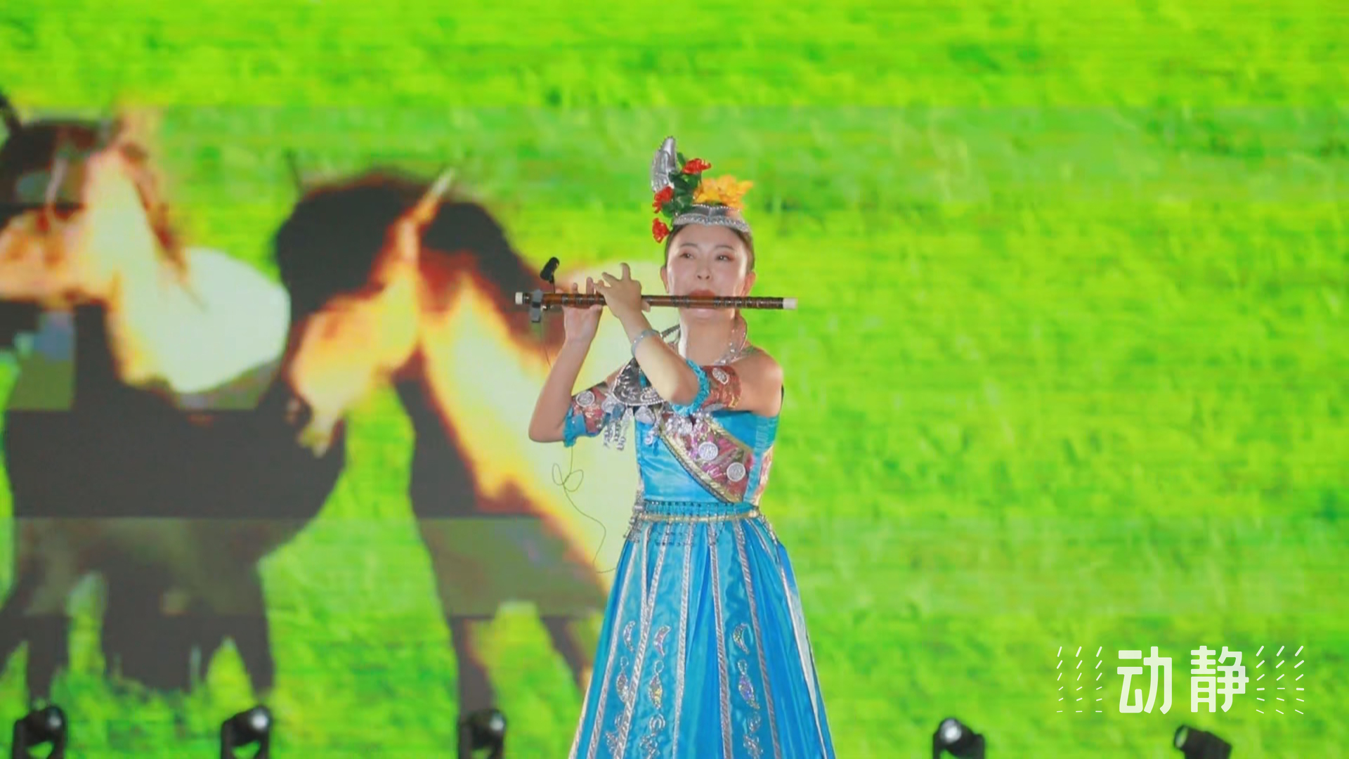 在桐梓“村晚”活动现场,舞蹈《彝人魂》《锦绣蓝》、笛子独奏《赛马》以及特技表演《刀锋上的舞者》等多姿多彩的节目,展现出中华民族的魅力和活力,让当地群众以及来自重庆、四川等地的游客纷纷拍手叫好。