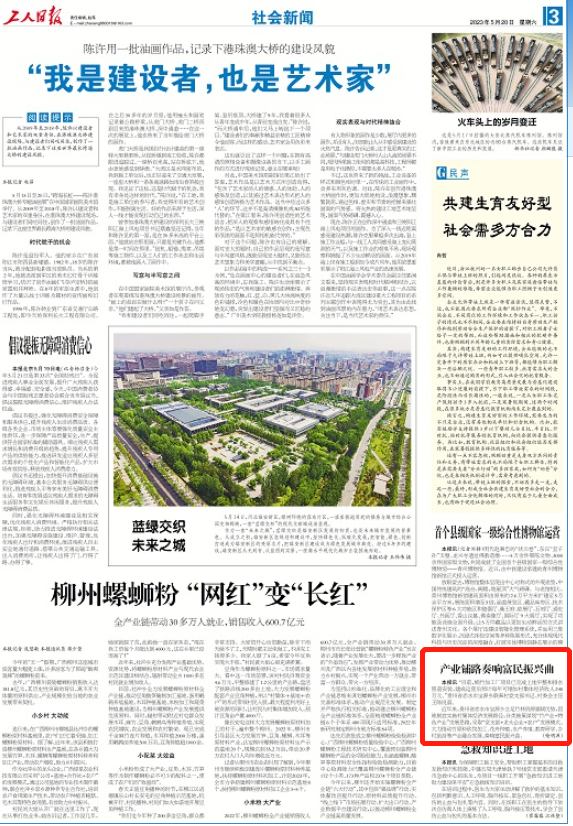 今天(5月20日),《工人日报》刊发新闻《产业铺路奏响富民振兴曲》。