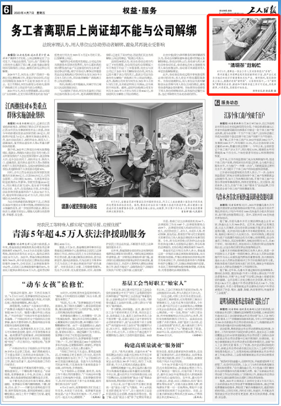 今天(4月7日),《工人日报》刊发新闻《“清明茶”赶制忙》。