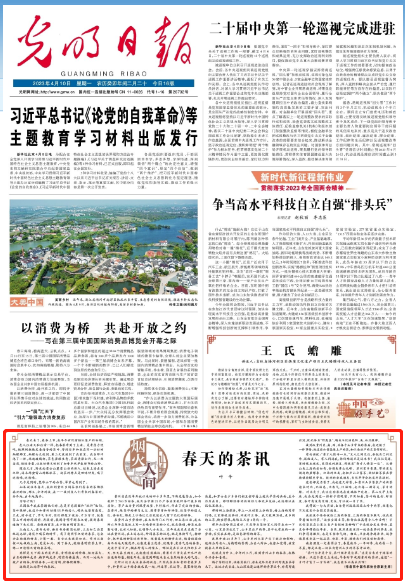 在贵州山乡劳动时,在文化部门工作时,回上海以后,我之所以年年在报纸上写一点喝贵州茶的小文,就是强调,好茶也要勤吆喝,让世人知晓,让喝茶人士关注。近年来我更是直截了当地在贵州说,在上海也说,所谓春茶的讯息,就是要抢节气、抢时令,把开春的好茶送进市场。随着春天的脚步走近,随着祖国由南而北地天暖花开,让散发着兰花香、玫瑰香、栗香气息的春茶,走进千家万户,搁在所有人的案头。哪怕是在不出太阳的多云天、阴天甚至雨天,也能透过玻璃杯,看着片片芽尖在开水冲泡后逐渐舒展、翻滚开来,感觉到那股来自大自然的春天的气息。
