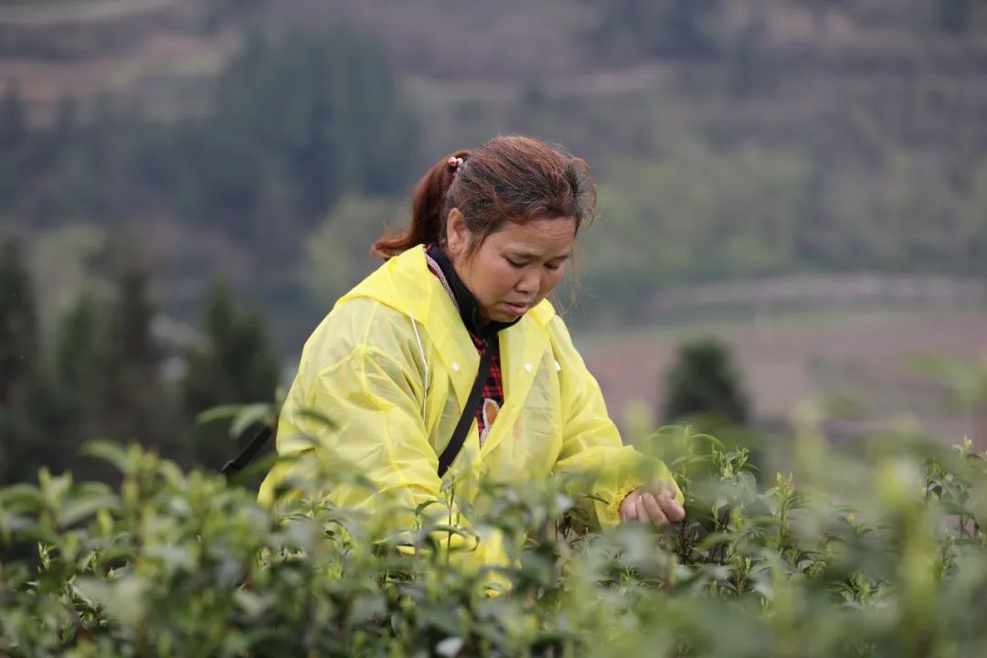 匀都村村民姜六仙一边忙着手上采茶的活儿,一边高兴地说着自己采茶的收获。她告诉记者说:现在“家门口”就能就业,采茶每天都是按斤计价,采的多赚的也多,在家务工既能照顾到家人,又可以有收入,对茶叶基地的这份工作很满意。