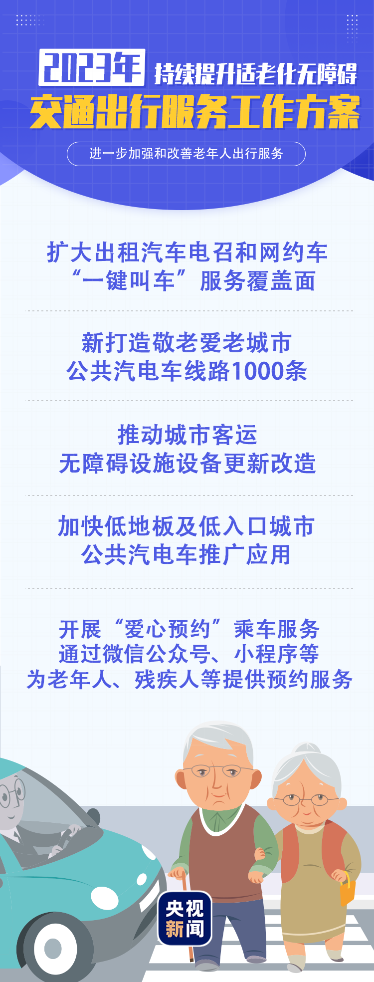 《2023年持续提升适老化无障碍交通出行服务工作方案》提出多项目标任务,满足广大老年人无障碍出行服务需要。