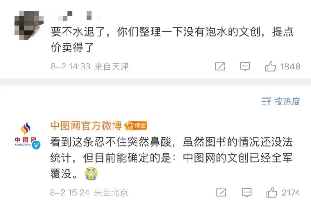 记者注意到,在网友的一条“整理些文创进行销售”的提议评论下,@中图网官方微博 表示,虽然图书的情况目前无法统计,但能确定的是:文创已经全军覆没。