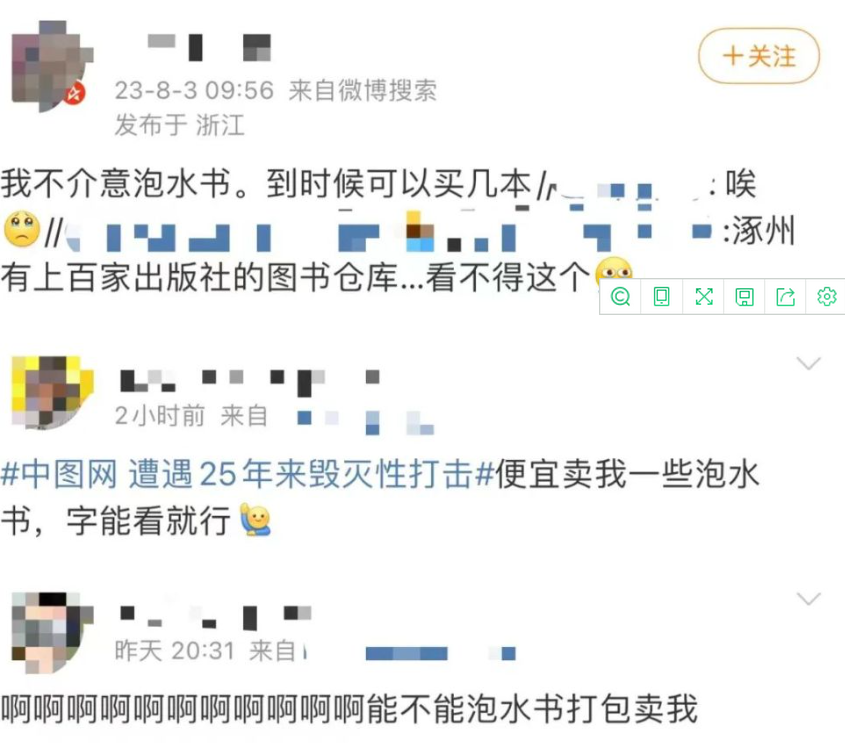 面对中图网等图书公司遭遇的困境,不少网友留言希望购买一些泡水书,以缓解图书公司的压力↓