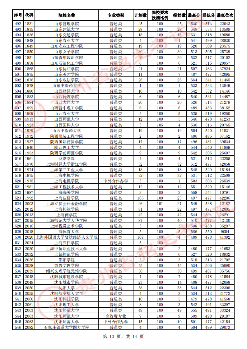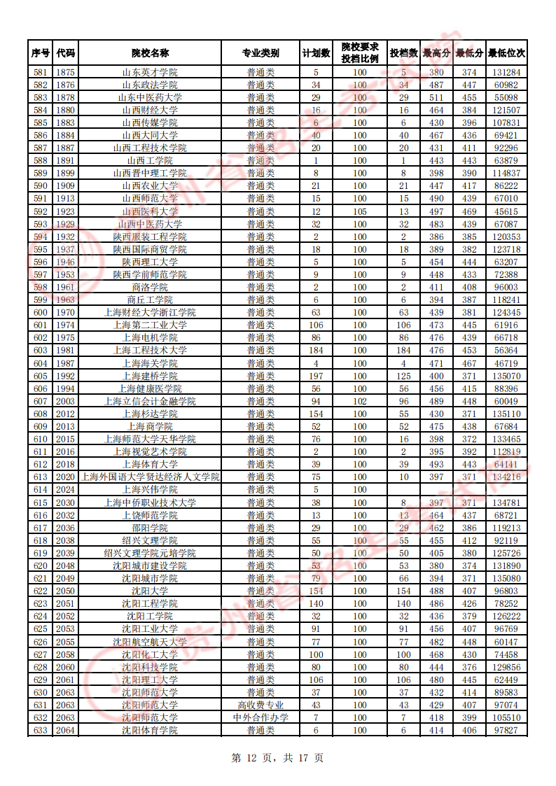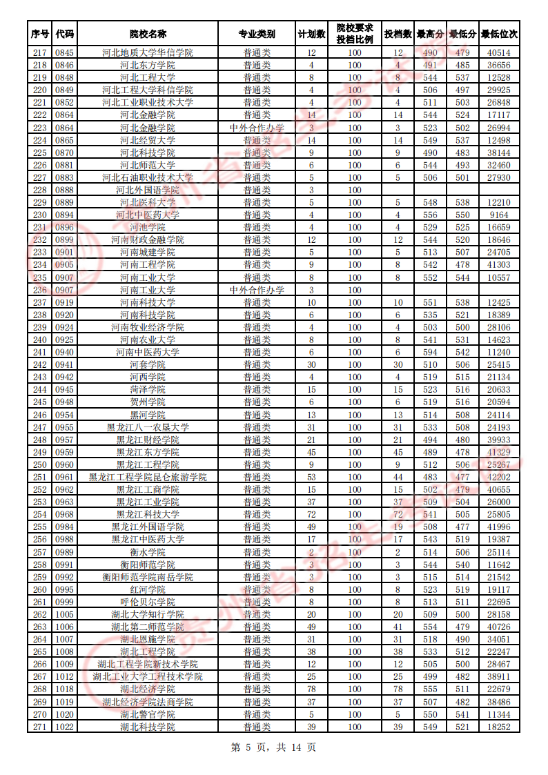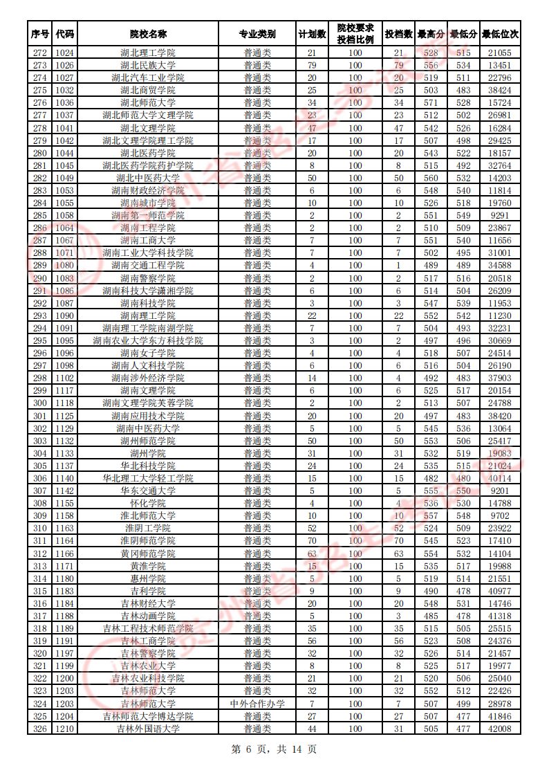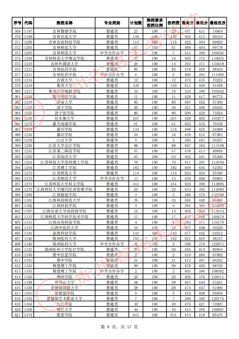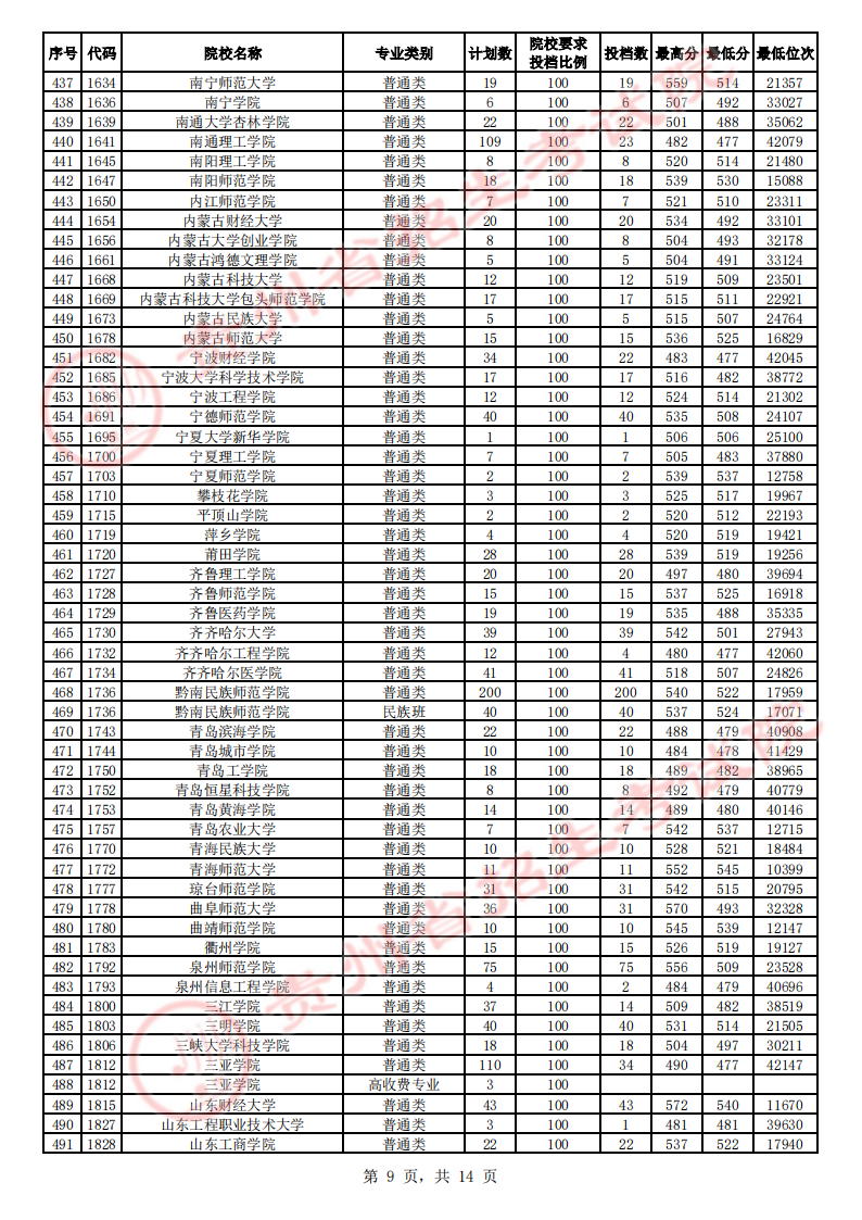 贵州高考二本院校第2次征集志愿平行投档情况