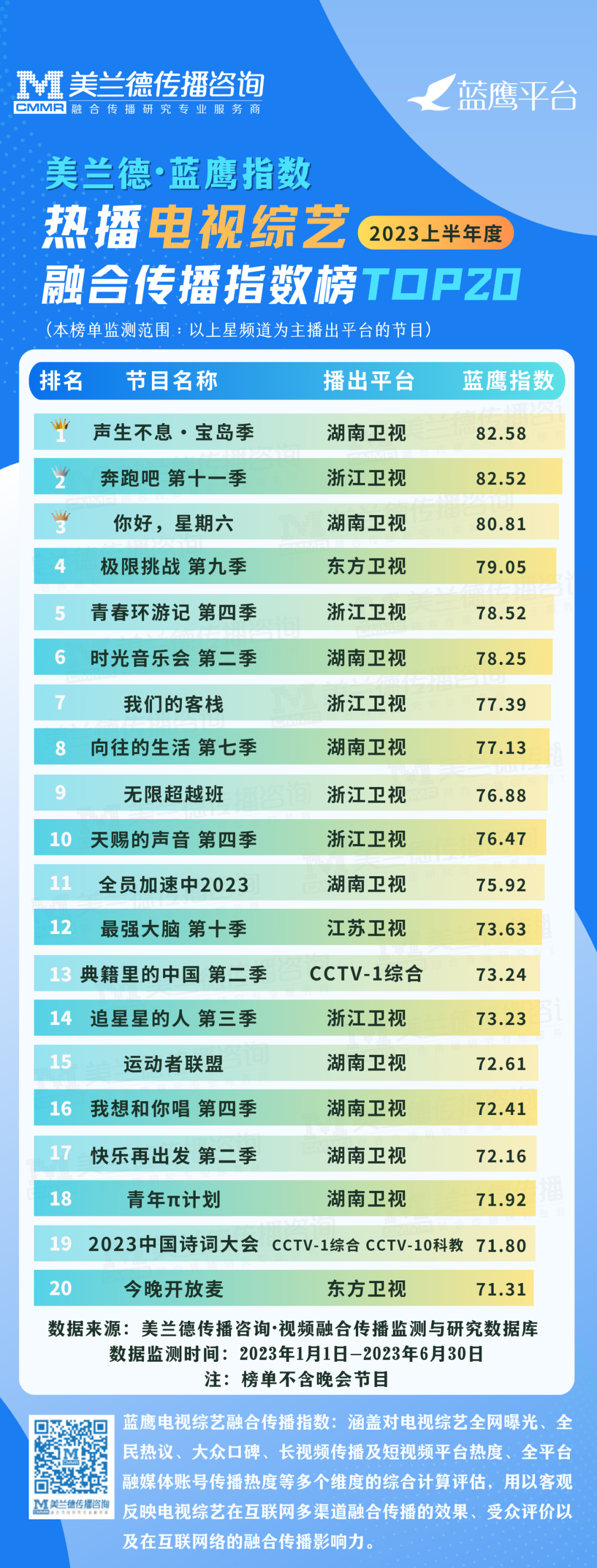 本篇我们为您奉上【2023年上半年影视节目融合传播指数榜】