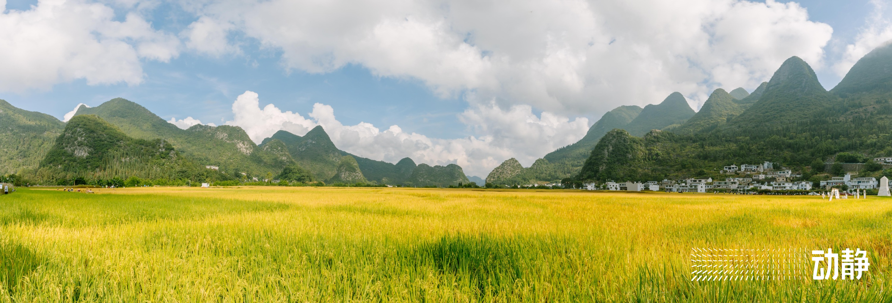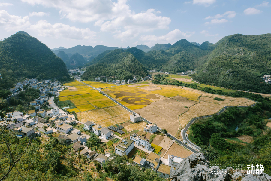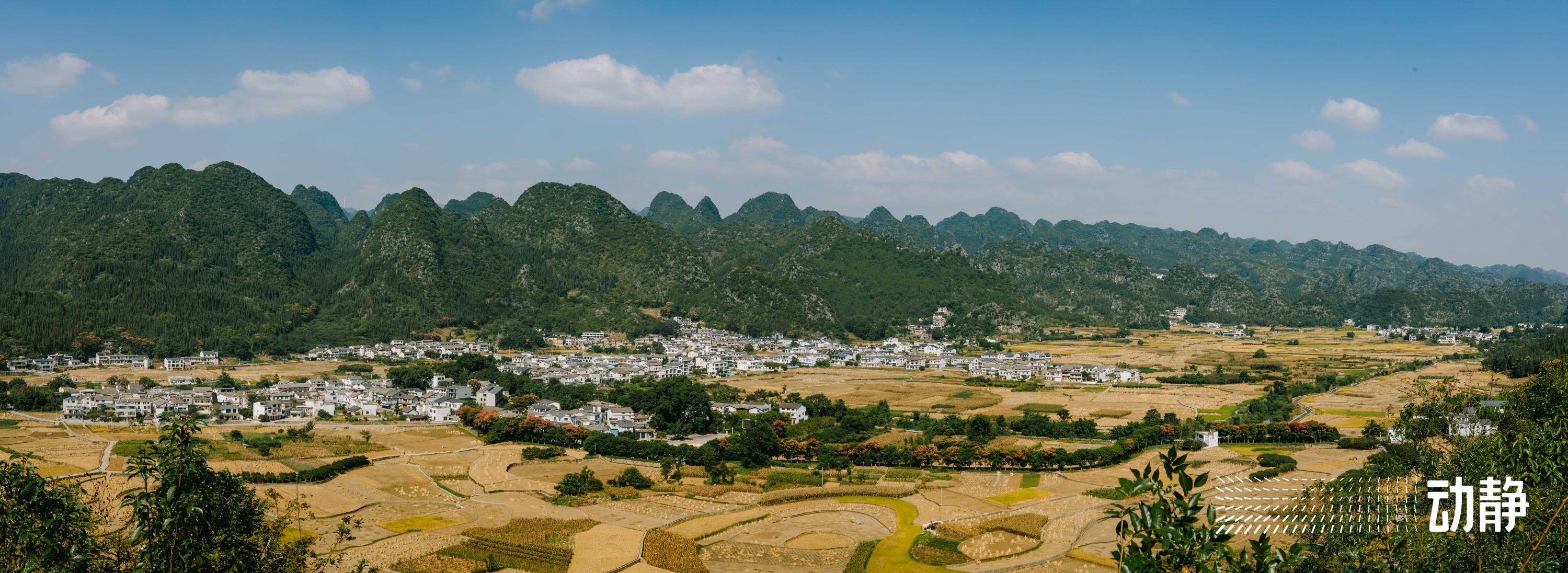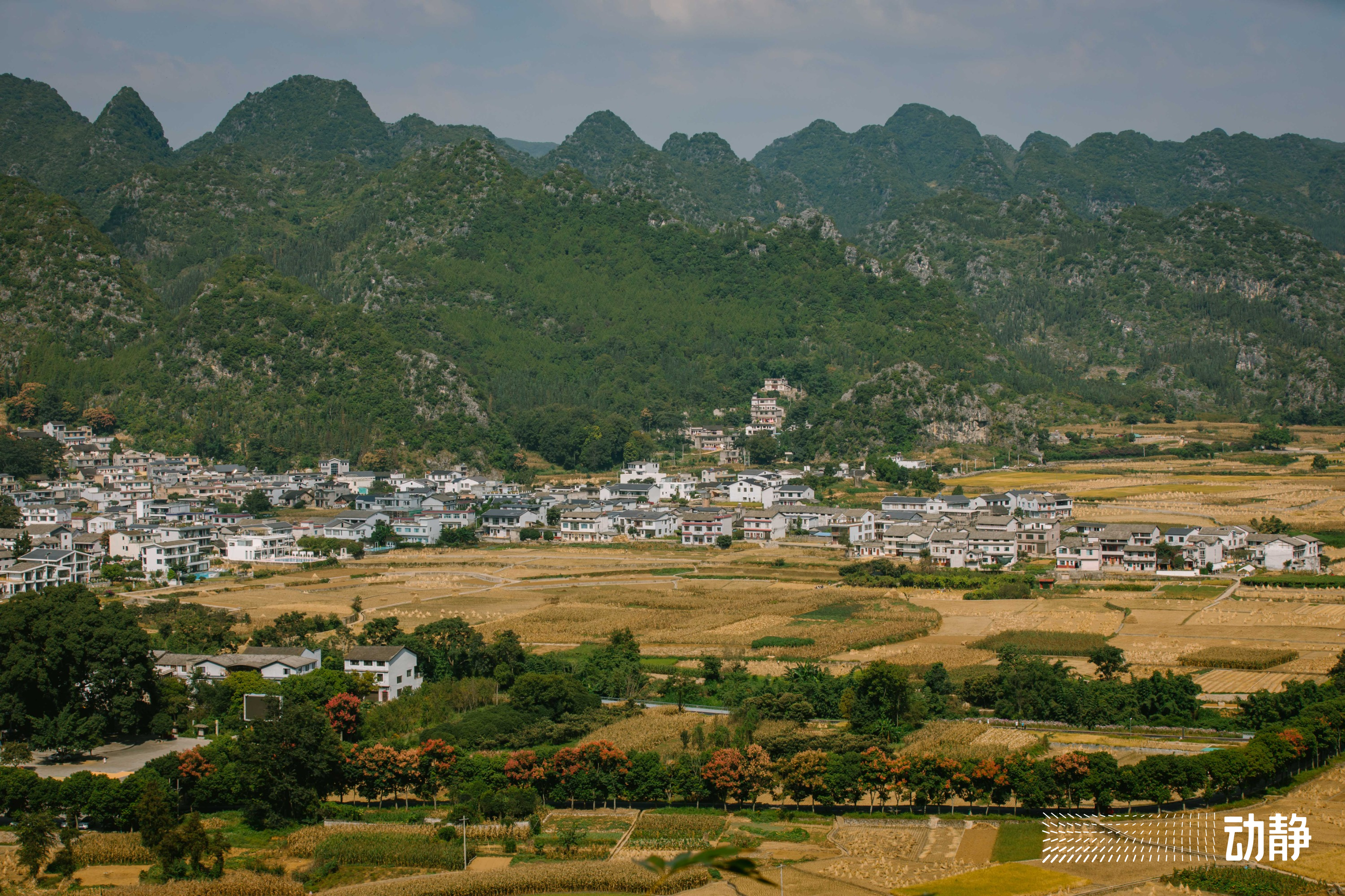 这里两万多座浩然成林的喀斯特巨作山体,环绕着六千多亩水稻田,其中还点缀着灰瓦白墙的布依族村落,形成了一幅绝美的万峰山居图。