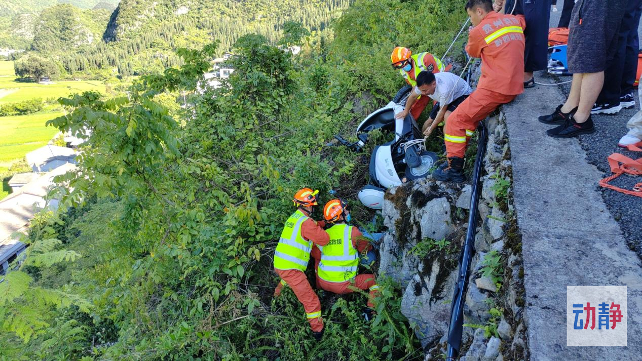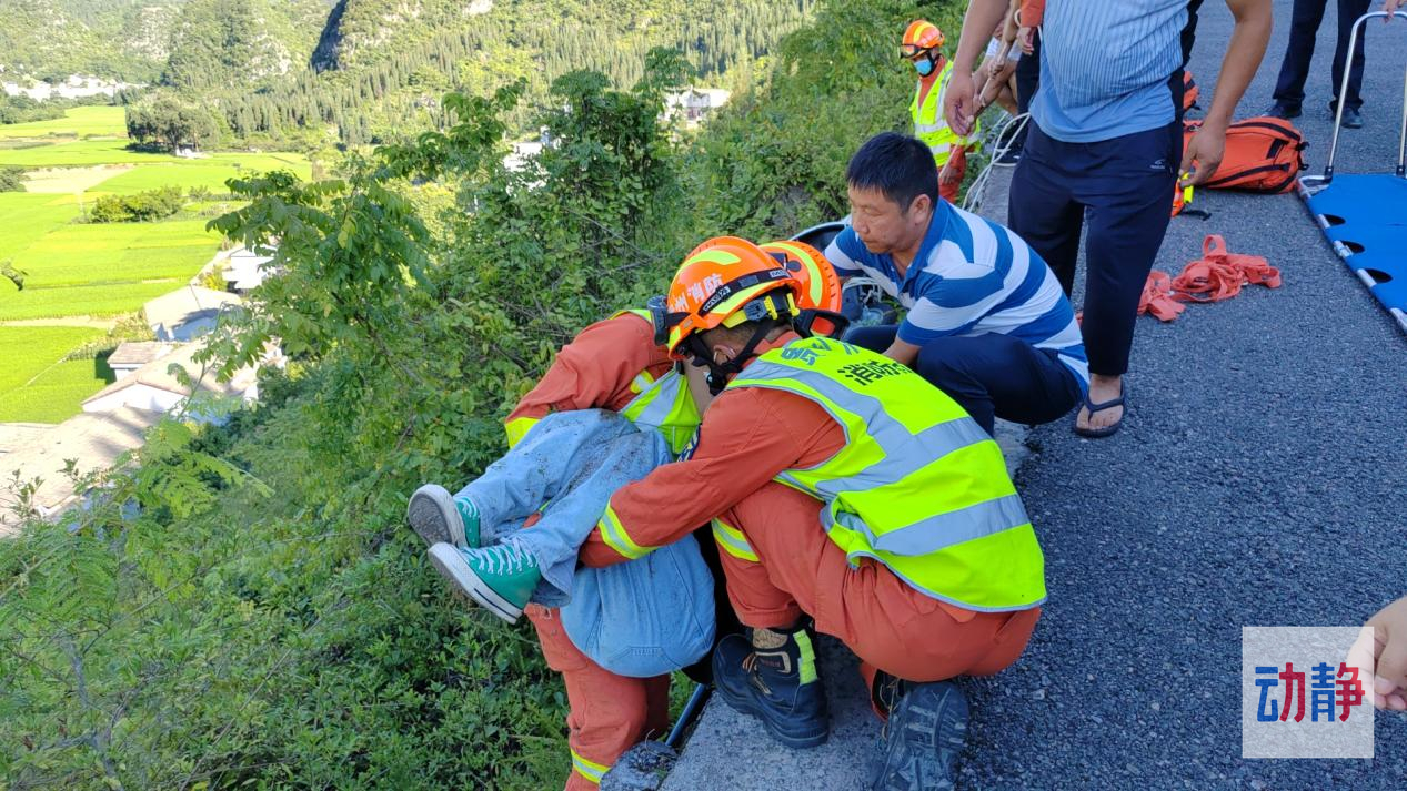 经询问得知,该女孩骑车行驶到该上坡路段时,在掉头过程中,由于操作不当连人带车坠落到路基边坡。女孩被电瓶车压着,动弹不得,现场环境复杂,稍有不慎可能会对女孩造成二次伤害。