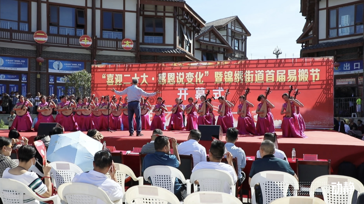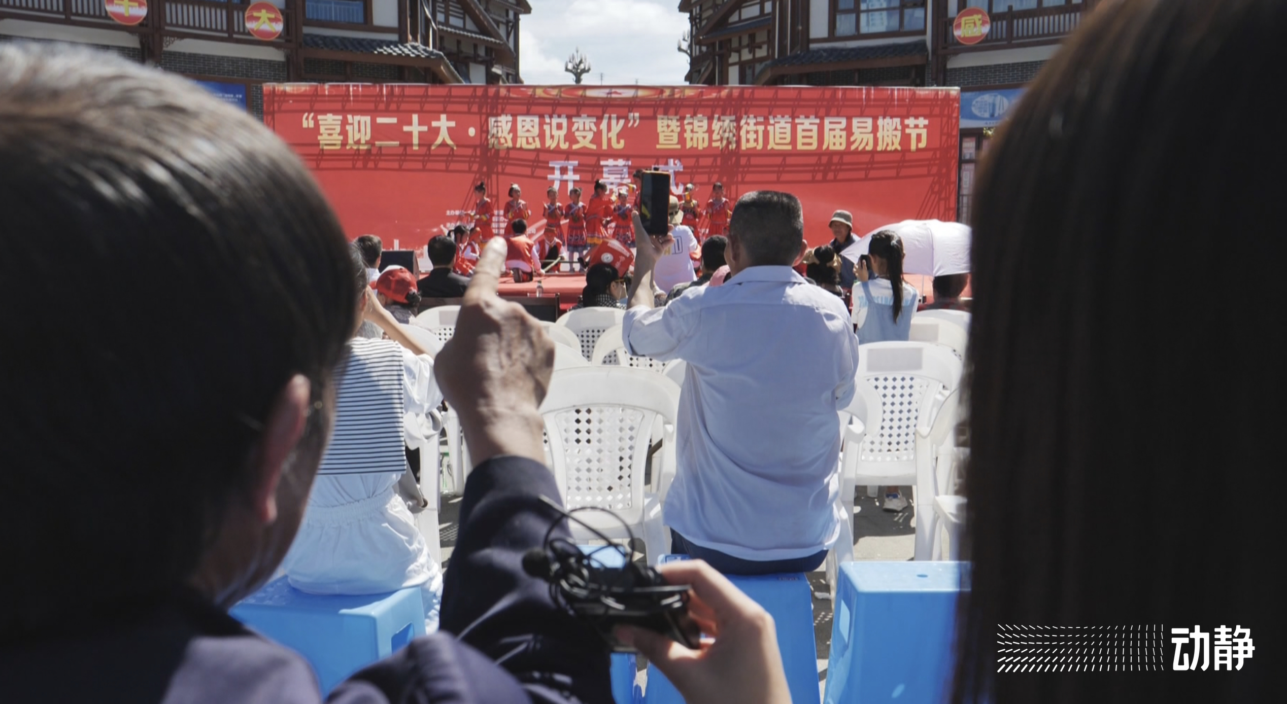 没过多久,得益于易地扶贫搬迁政策的实施,哈冲苗寨整寨搬迁到了黔西市的锦绣花都社区,记者找到杨绍书时,也特别巧地碰上了社区专为搬迁群众举办的首届“易搬节”,大家载歌载舞,一起欢庆搬迁后的新生活。杨绍书,就是台下观看表演的其中一员。