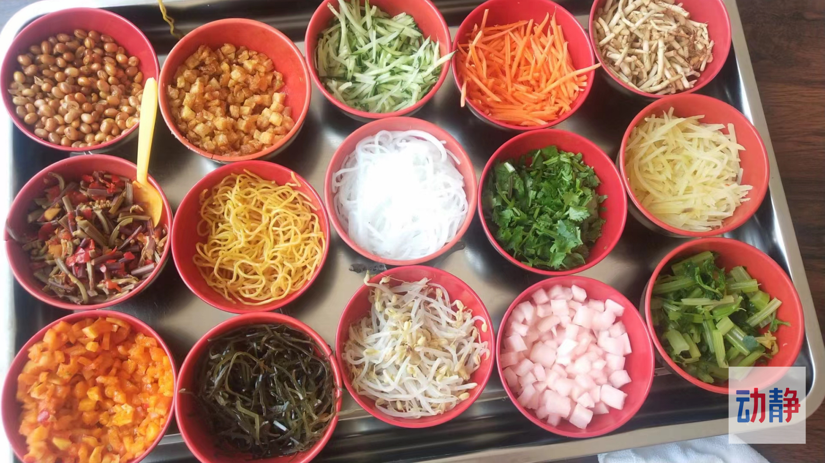 黄大琴丝娃娃跟如今新派的“丝恋”“包整”有明显的区别,所经营者,只此一味,绝不喧宾夺主。丝娃娃之外,还有炒粉、炒饵块作为主食提供,然后便是冰粉、绿豆汤,此外一律木有。更重要的是,丝娃娃的所有配菜,切丝之后,除需要先行烫熟者外,不做任何处理,蘸水也只有一种,而新派丝娃娃则不然,很多配菜是提前凉拌过的,在老式的贵阳丝娃娃基础上加以改良,使其更适应年轻一代的口味。很难说孰是孰非,但一口黄大琴丝娃娃塞进嘴里,还是会勾起对丝娃娃的记忆,忍不住要提醒自己:“就是这个味。”