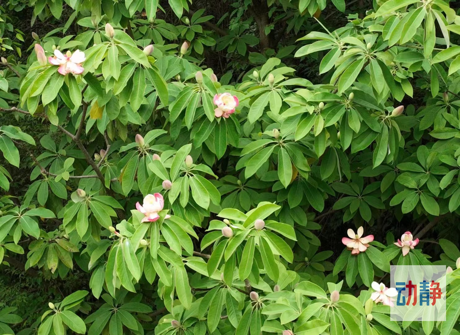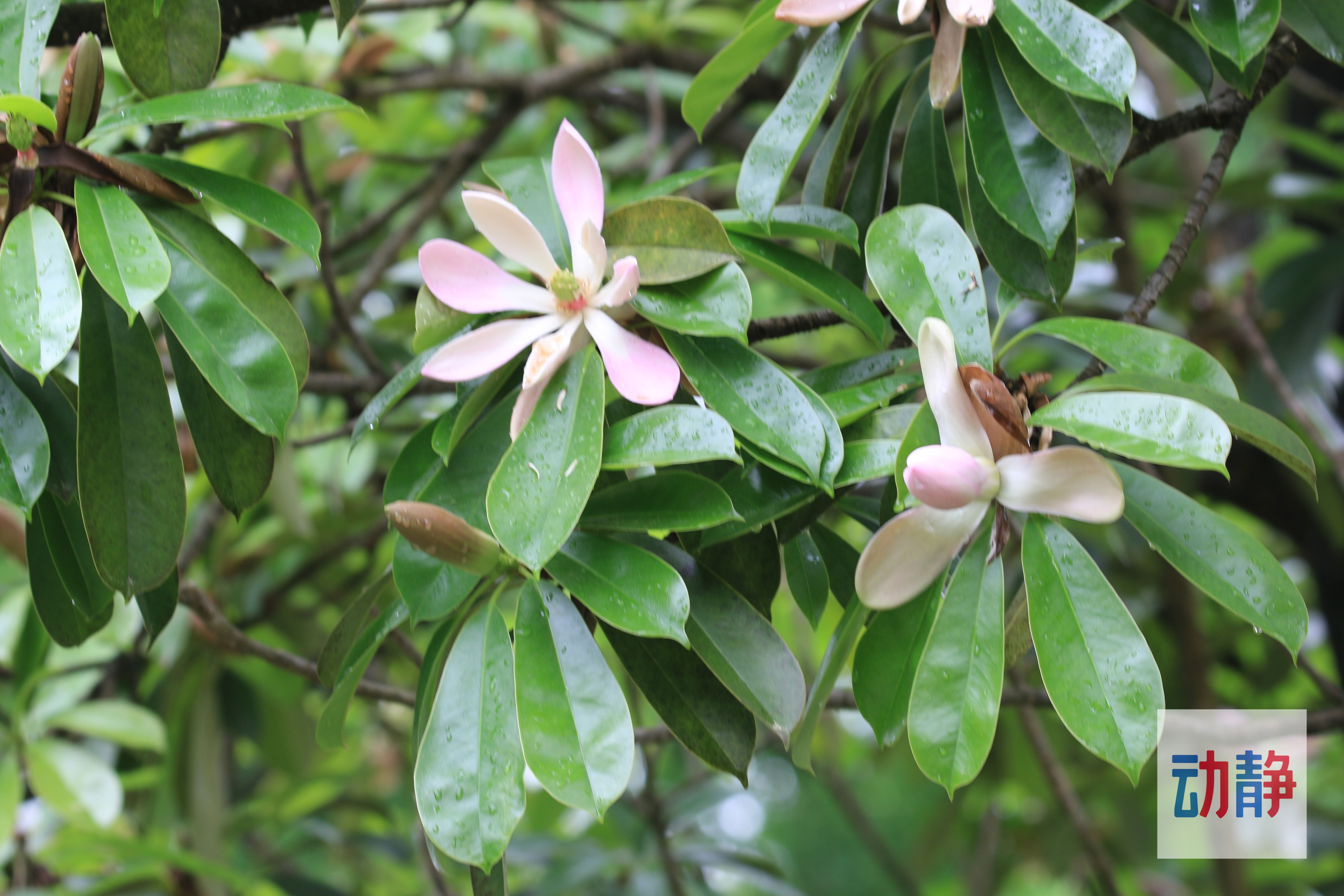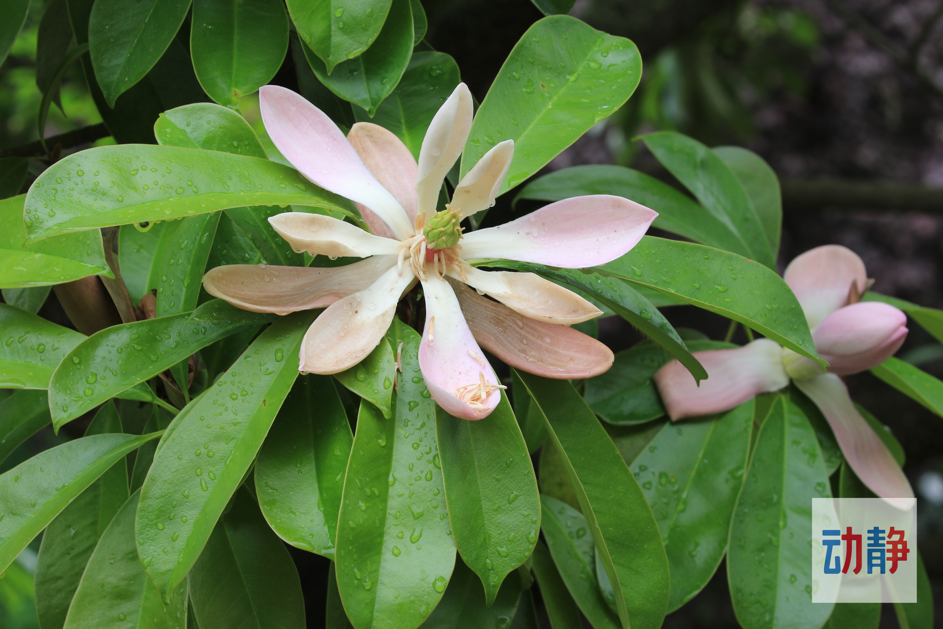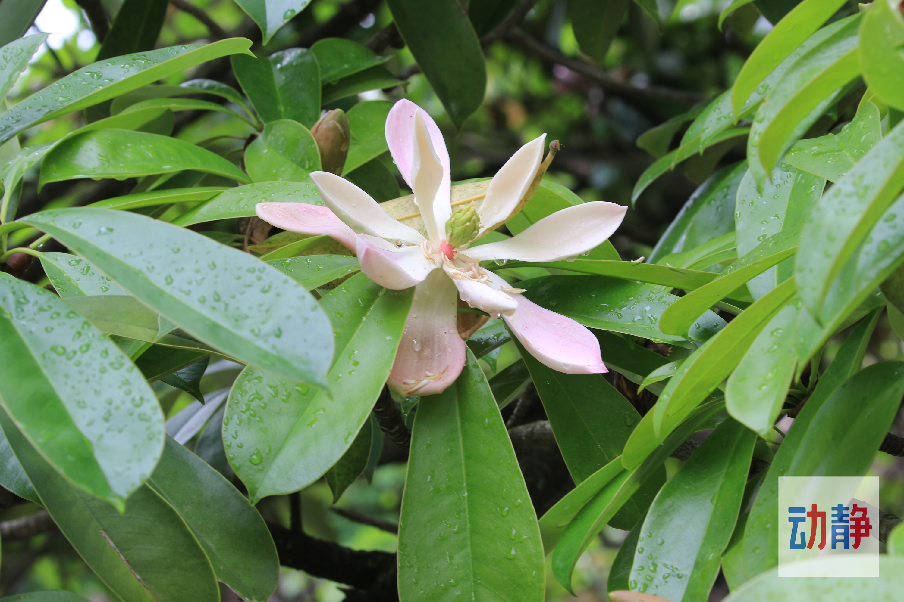 他在调查过程中兴奋地发现了一种似乎从来没有被记录过的木兰科植物,这种植物可高达20米,最大的胸径有50厘米,是一种常绿的乔木树种。它的叶子革质,有光泽,一般集中生长在枝条的顶端。小枝比较粗壮,最大的小枝直径可达一厘米。叶子也较大,呈倒卵状椭圆形或倒卵状披针形,长达17-20厘米,宽可达6-7厘米。先端圆但有一小尖,基部渐窄,下延至叶柄。单朵花顶生于小枝上,粉红色花被片厚革质,有11-12片,3-4轮排列,外轮倒卵状椭圆形,长6-8厘米,宽3-4厘米,顶端圆形,外面中部淡紫红色。聚合果卵球形,成熟时淡紫红色或淡绿色,每个果子有2-5粒种子,果子成熟时沿腹缝线全裂及沿背缝线中部以上开裂。裹着红色假种皮的种子从开裂的果子表面散出,先由一条白色细小的丝与果子牵扯着,约一个小时后,种子才完全脱落,离开果子掉入乱石草丛中,开始新的生命历程。