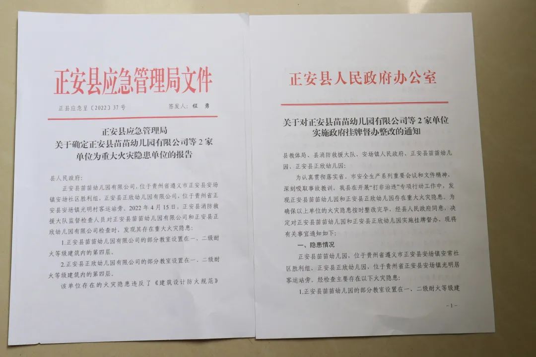 此前,正安县消防救援大队防火监督员在“打非治违”专项检查行动中,发现正安县苗苗幼儿园、正安县正欣幼儿园存在部分教室等儿童活动场所设置在建筑第四层,违反《建筑设计防火规范》GB50016-2014(2018版)5·4·4条之规定。