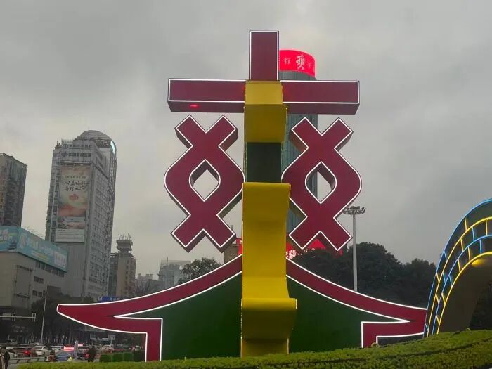 贵阳市综合行政执法局城市绿化服务中心规划科负责人陈达权告诉记者:“这个主体是高铁列车驶入林城贵阳的场景。高铁窗口,也是城市的窗口。所以我们就想更多表达贵阳自己的历史文化、民族文化和生态文化。主体造型是一个十字形结构。正反两面是地标性建筑甲秀楼的剪影,左右两面是贵阳‘爽爽贵阳’爽字的LOGO。正面还能看出一个‘林’字,代表林城,呼应我们的生态文化。”