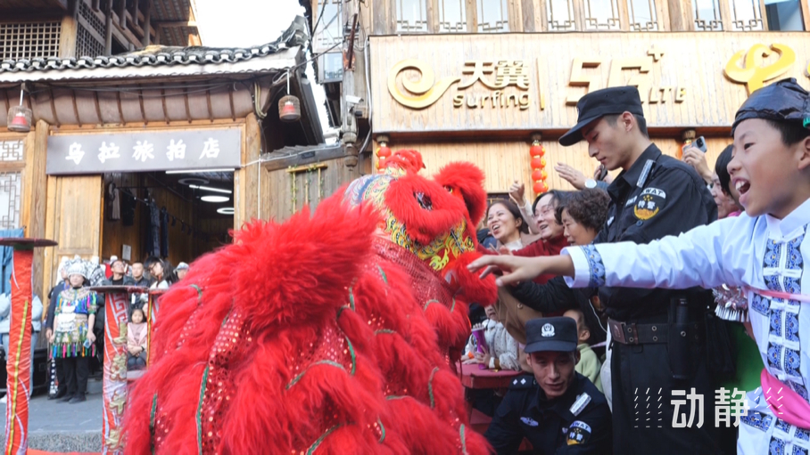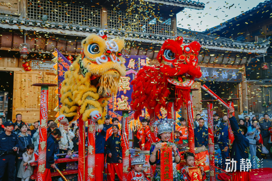 庆祝活动里,在东西部协作中与黎平县结对的广东省佛山市禅城区,带来了难度较大的梅花桩醒狮表演,为侗年增添了别样风采。