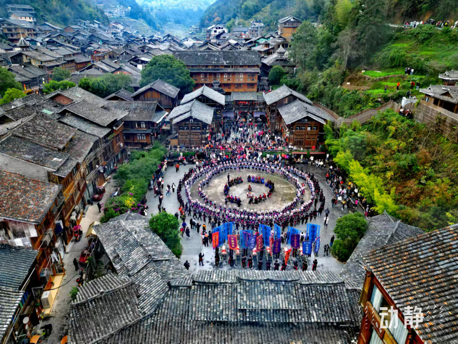 黔东南苗族侗族自治州黎平县肇兴侗寨是全国最大的侗族村寨,侗年庆祝活动上,村寨的男女老少身穿民族盛装,祈求来年风调雨顺、五谷丰登。