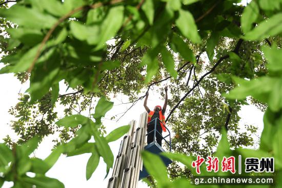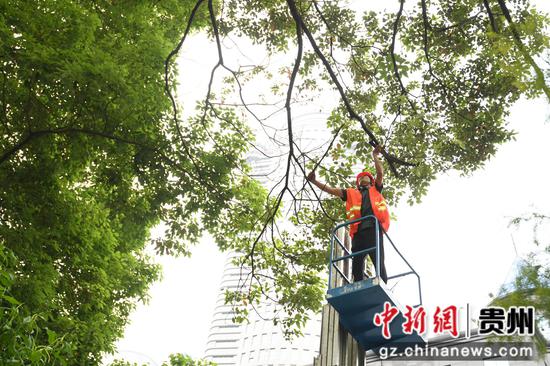 作为2024年“5·19中国旅游日”主题周倒计时城市接力(贵阳)活动之一的“娱”在贵阳·民族巡游大联欢将于5月18日举行。在途经的南明区中华南路和遵义路段,园林工人们正紧张有序地进行花镜打造、摆放花架、设置花牌、行道树修枝修剪等绿化工作,美化城市环境,提升城市品质,丰富城市景观色彩。