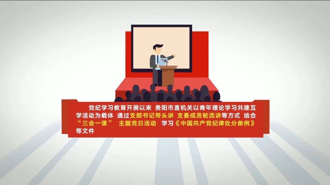 党纪学习教育开展以来,贵阳市直机关以青年理论学习共建互学活动为载体,通过支部书记带头讲、支委成员轮流讲等方式,结合“三会一课”、主题党日活动,学习《中国共产党纪律处分条例》等文件,为广大年轻干部上好纪律必修课,把好信仰“方向盘”,引导机关干部切实把学习教育成果转化为推动各项工作高质量发展的强大动力。