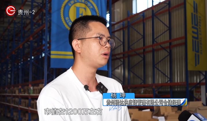贵州驿达供应链管理有限公司仓储经理杨坤:从2022年到2023年整整一年,我们进货已经有23万件了,市值在1200万左右。