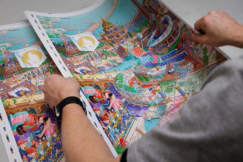 “海报中一共‘藏’了8个巴黎奥运会吉祥物,需要花点时间才能找出来。奥运五环和残奥三色标志、大众马拉松跑、奥林匹克格言等,也都可以在里头找到。”加托尼说。这两张海报均由他手绘完成,整个创作过程一共花了约2000小时。