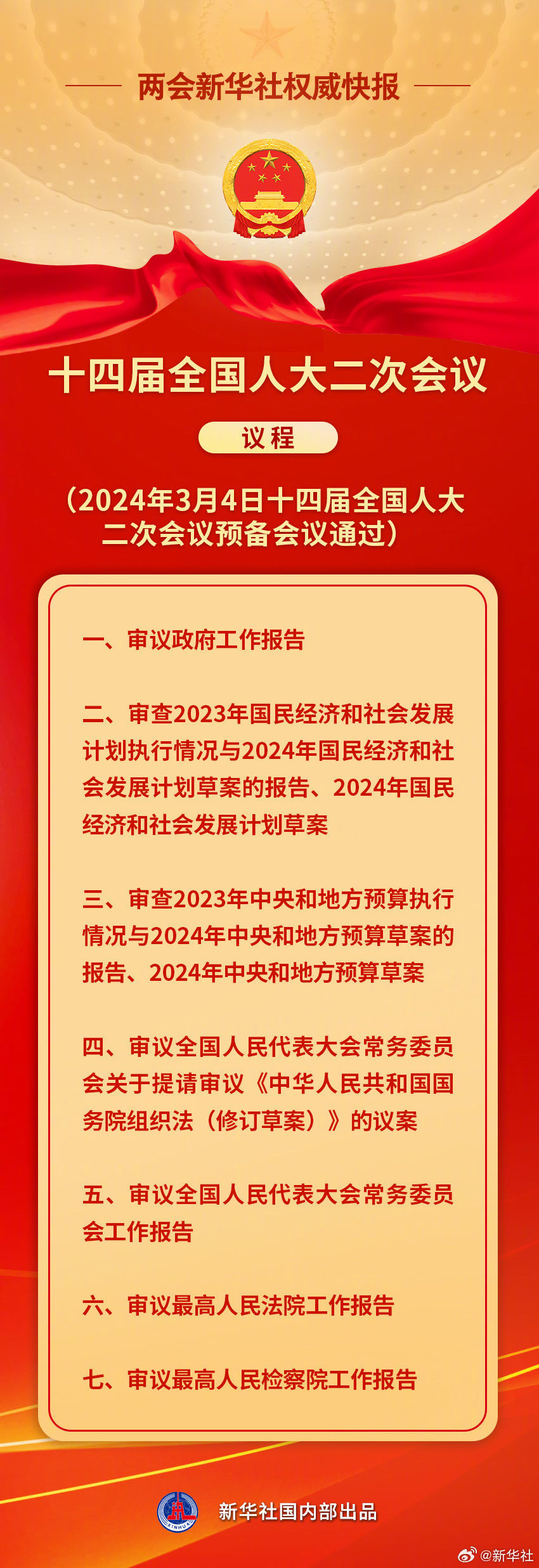 十四届全国人大二次会议4日上午举行预备会议,通过了大会议程。详情请看⬇