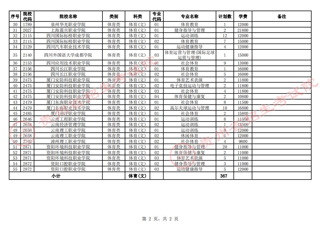 一、征集志愿对象:达到我省体育类高职(专科)院校最低投档控制分数线未被录取的考生。体育(文):文化分160,专业分97,综合分177;2.体育(理):文化分160,专业分97,综合分177。